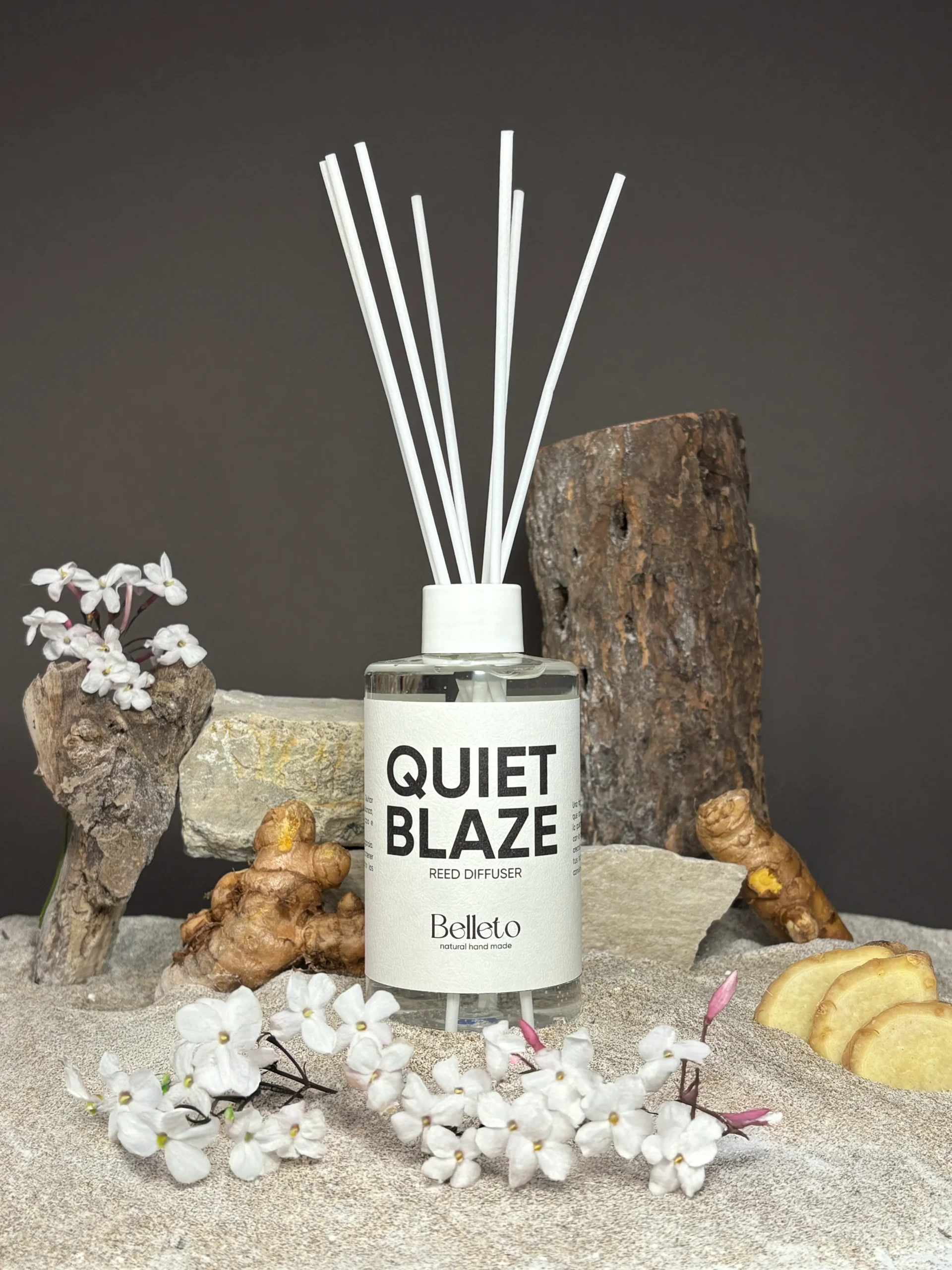 4º) Quiet Blaze(Té Blanco & Jengibre): Una fragancia fresca y sofisticada que transforma cualquier espacio: la pureza del té blanco se fusiona con la chispa vibrante del jengibre, creando un aroma único que perfuma tus momentos especiales y los convierte en memorias inolvidables.